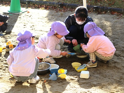 毎年、市内の色金保育園に協力していただき、実施しています。今年も12月15日(月)から19日(金)まで、1日1クラスずつ実習させていただきます。