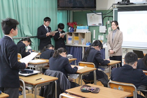 1月22日(木) 1年生がキャリア教育の一環として「働く人に学ぶ会」を行いました。